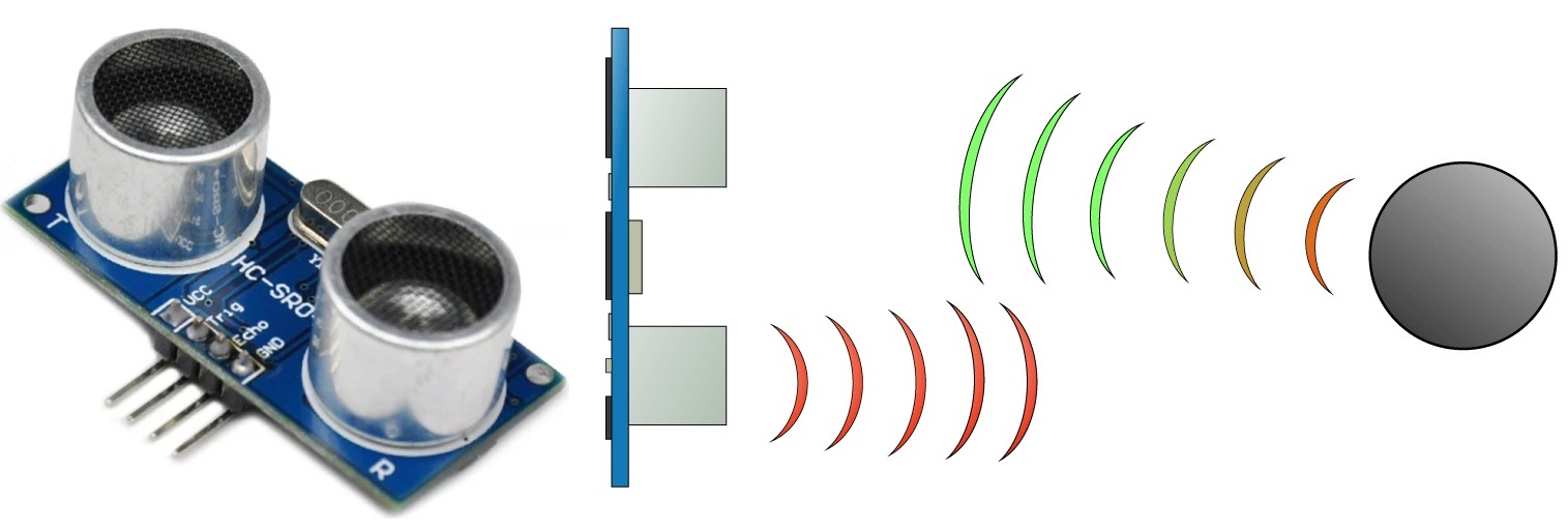 - Ultrasonik mesafe sensörü üzerindeki osilatör kullanılarak modülün üzerindeki ultrasonik dalga yayıcı tarafından havaya ses dalgaları gönderilir.