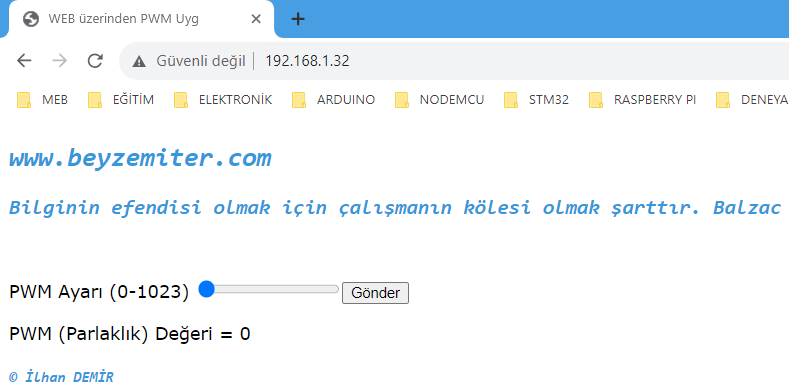 Görsel 1.3: pwmGonder() fonksiyonunun web tarayıcı çıktısı (yerel IP adresiyle erişim)