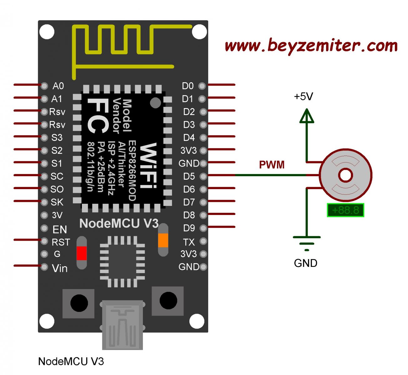 Görsel 1.4: NodeMCU V3 ESP8266 ESP-12E ile UART seri haberleşme servo motor kontrolü uygulaması devre şeması