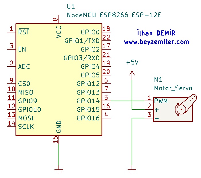 Görsel 1.5: NodeMCU V3 ESP8266 ESP-12E ile UART seri haberleşme servo motor kontrolü uygulaması devre şeması (KiCad 7.06 ile çizilmiştir)