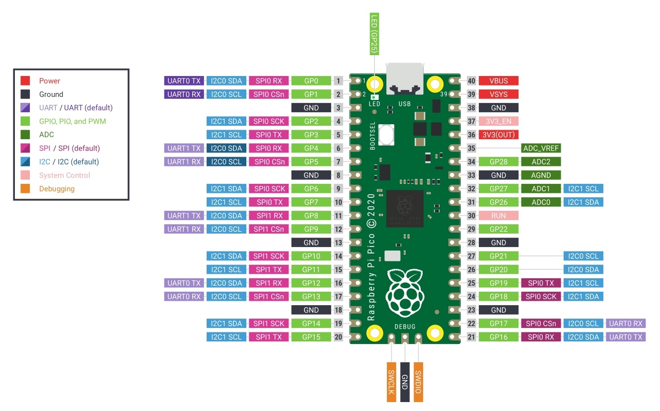 Görsel 1.2: Raspbery pi pico pin yapısı